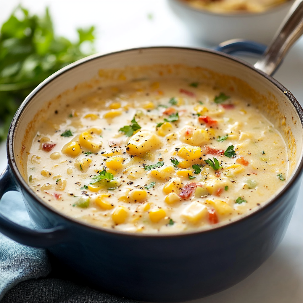 Warm up with this delicious corn chowder, a creamy blend of sweet corn and hearty potatoes, enriched with aromatic spices. Perfect for chilly evenings, this comforting dish is sure to become a family favorite, creating memories with every bowl.