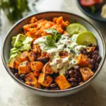 - Assemble bowls by layering roasted sweet potatoes first, then warm black beans, followed by avocado and cilantro. Drizzle with lime juice.