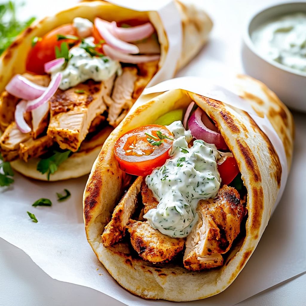 Chicken gyros with tzatziki sauce are a delightful blend of marinated chicken, fresh veggies, and creamy tzatziki, all wrapped in warm pita bread. This easy-to-make dish is perfect for summer barbecues or cozy dinners at home. With the rich flavors of Greek spices and the refreshing crunch of vegetables, each bite transports you to a sun-kissed Mediterranean paradise. Whether you’re feeding a crowd or enjoying a quiet evening, these gyros are sure to impress.