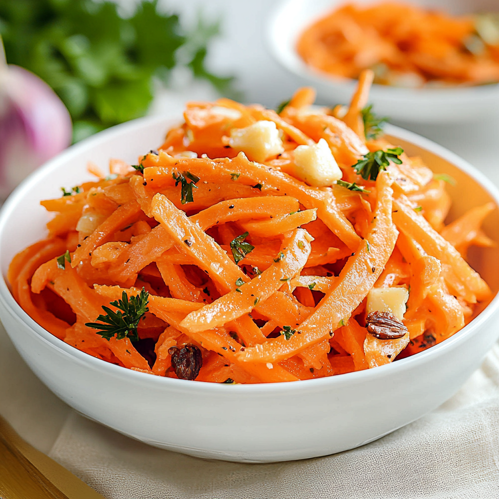 Carrot salad is a vibrant and refreshing dish that combines the sweetness of fresh carrots with a zesty dressing. Ideal for summer picnics or family dinners, this salad is not only delicious but also packed with nutrition. Easy to prepare and versatile, you can enjoy it on its own or as a side dish. With the perfect balance of flavors, this carrot salad will surely brighten your table and delight your taste buds.
