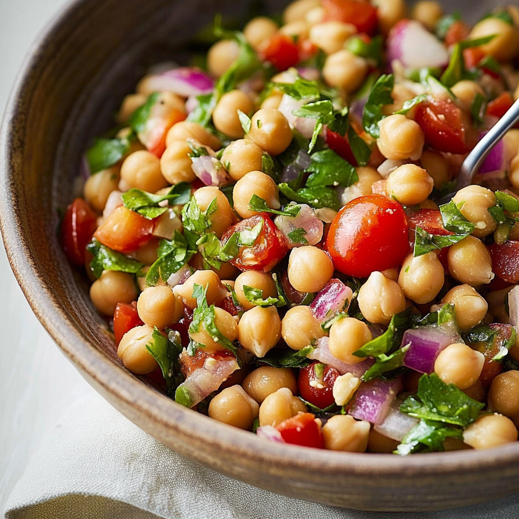 This chickpea salad is more than just a dish; it’s an experience. Picture yourself enjoying it on a sun-drenched picnic or at a backyard barbecue where everyone can’t help but ask for seconds. It’s the perfect blend of nutrition and taste that will have you coming back for more.